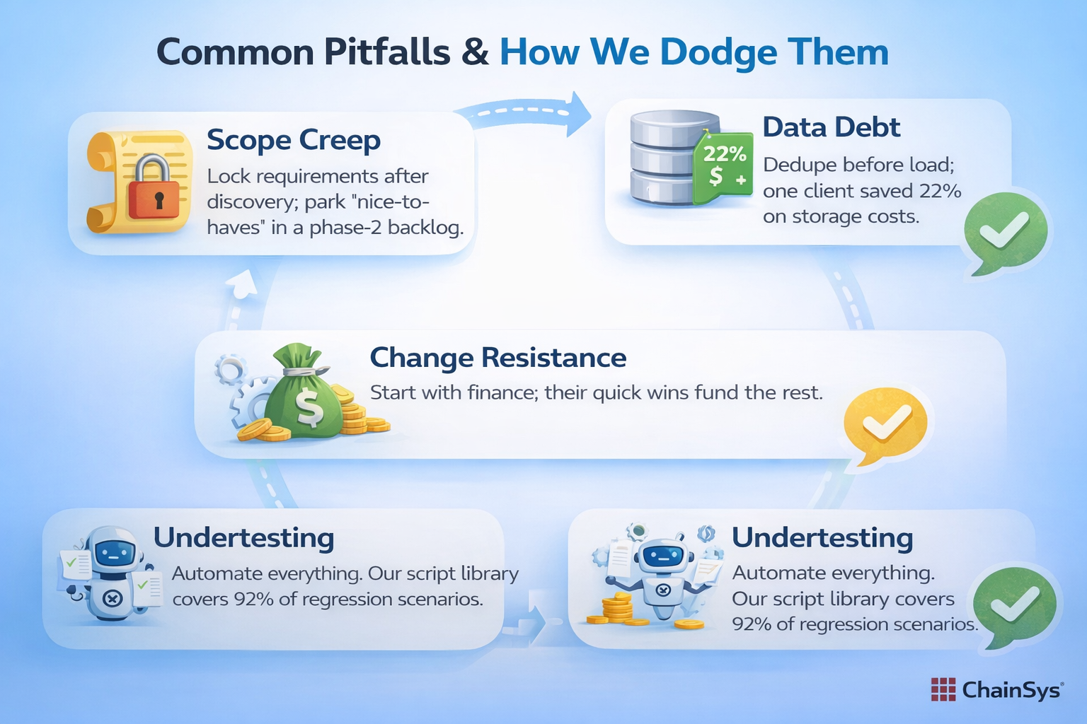 SAP R/3 to Oracle Fusion Cloud isn’t a project—it’s a transformation. Chainsys has done it for retail, manufacturing, life sciences, and energy. We bring the IP, the accelerators, and the battle scars.