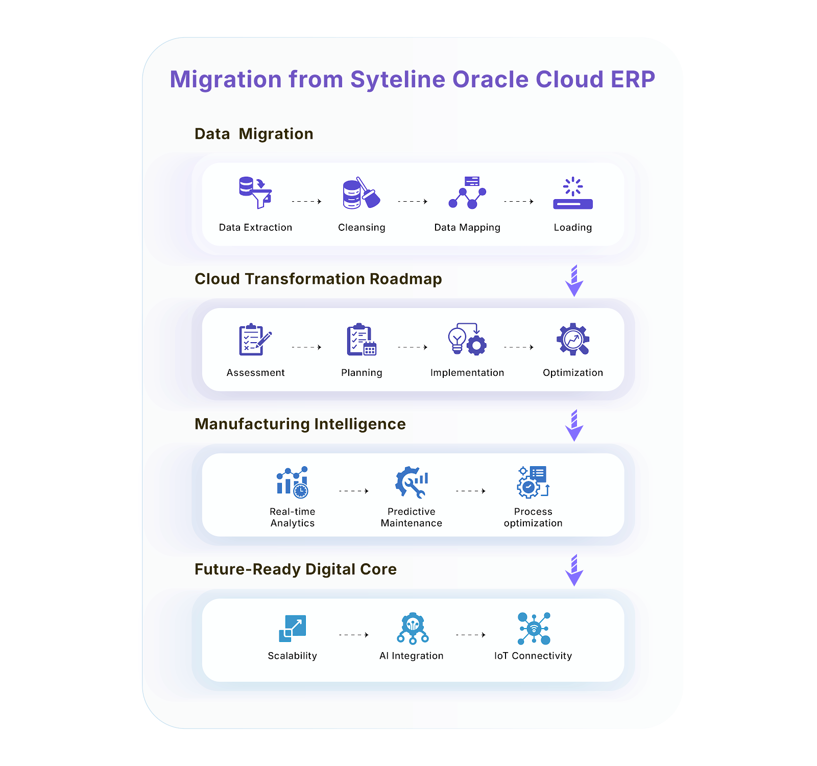 Drawing on decades of complex modernization expertise, ChainSys employs a disciplined, proven roadmap to help manufacturers transition from Syteline to Oracle Fusion Cloud. This process is designed to be secure, rapid, and executed with absolute confidence in data integrity.