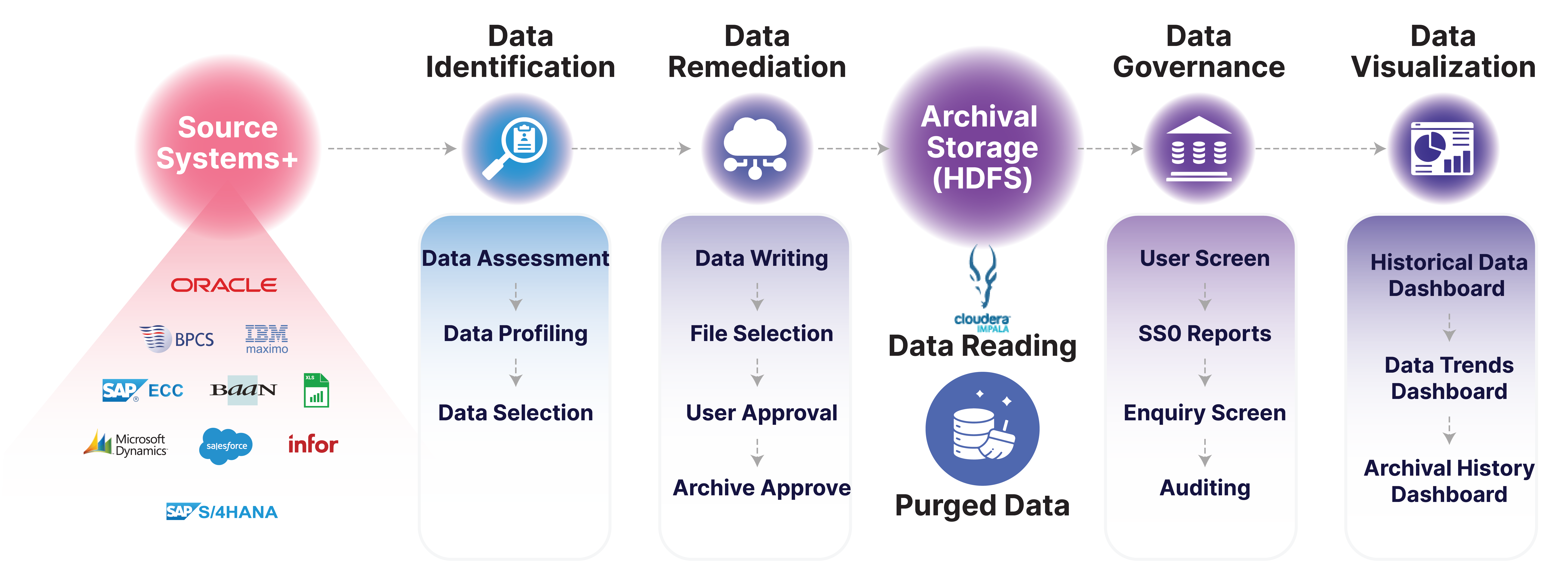The solution includes detailed reporting and audit trails for all archival and purging activities, supporting compliance with industry regulations and internal policies.