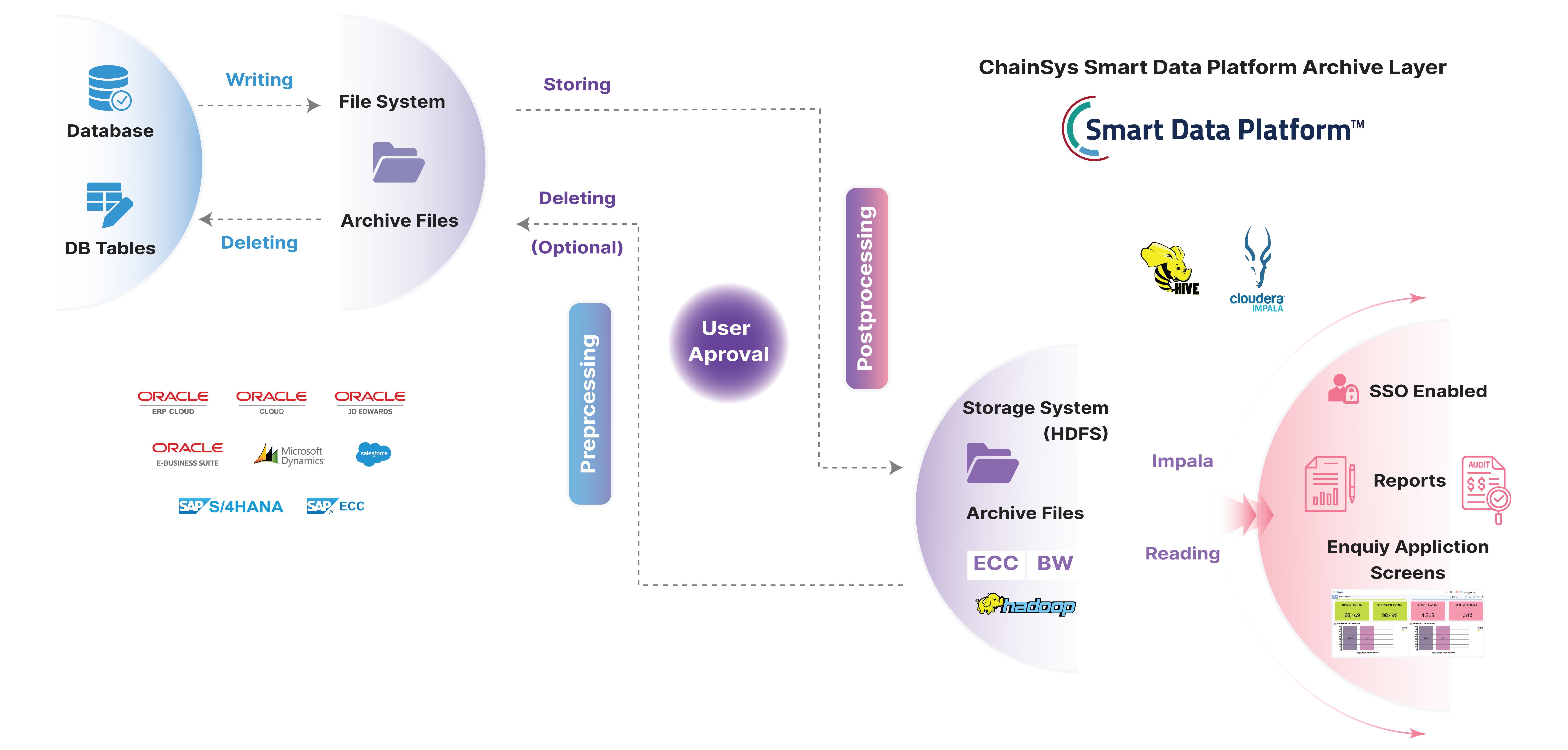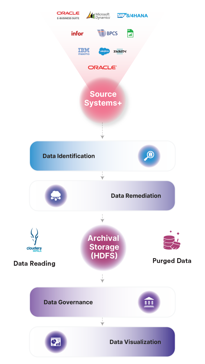 ChainSys automates archival with certified connectors, business rules, data masking, and role-based access. Retire safely without losing insight.