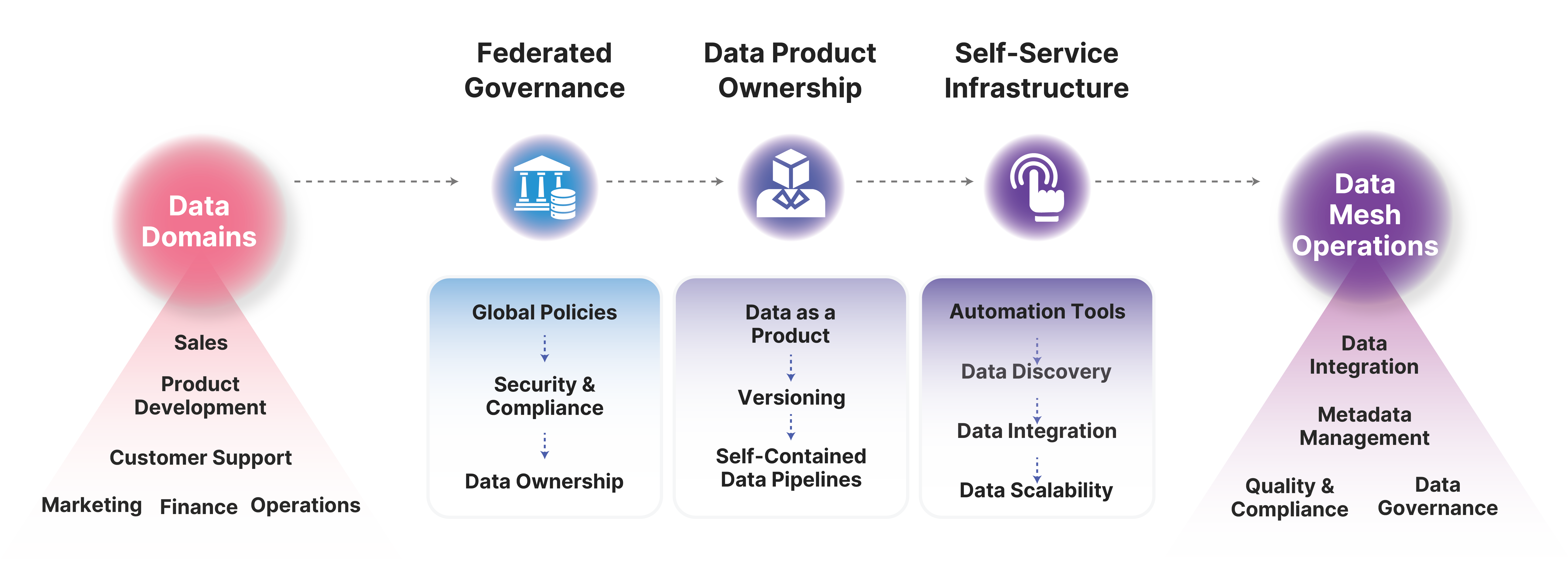 ChainSys Data Mesh architecture focuses on domain ownership, ensuring that each business unit can manage its data as a product.