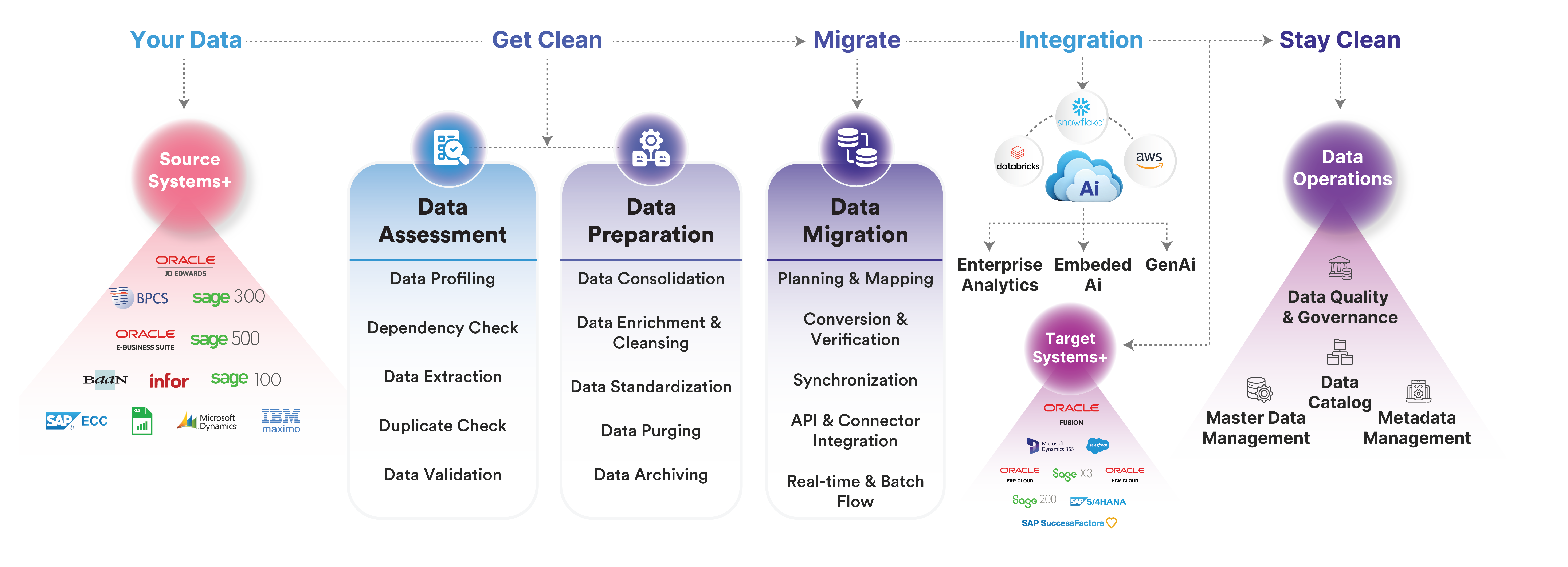 Migrate your enterprise data with confidence using ChainSys’ AI-driven Data Migration solutions. Our Smart Data Platform ensures a seamless, automated, and secure transition across legacy and modern systems while maintaining data integrity and minimizing downtime. With a metadata-driven, no-code/low-code approach, achieve faster, cost-effective migrations with repeatability and compliance. Move your data effortlessly and accelerate your digital transformation journey!
