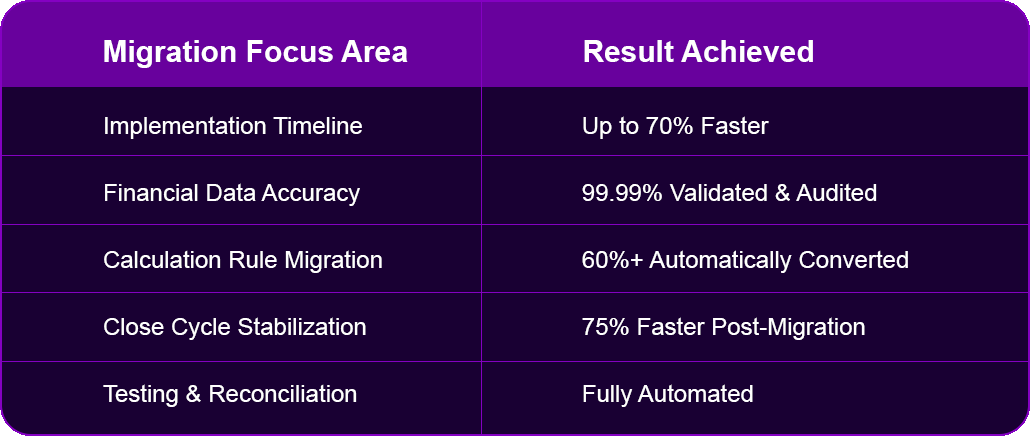 Our platform includes prebuilt transformation templates for chart of accounts, entity hierarchies, and data integration workflows — expediting the project timeline.