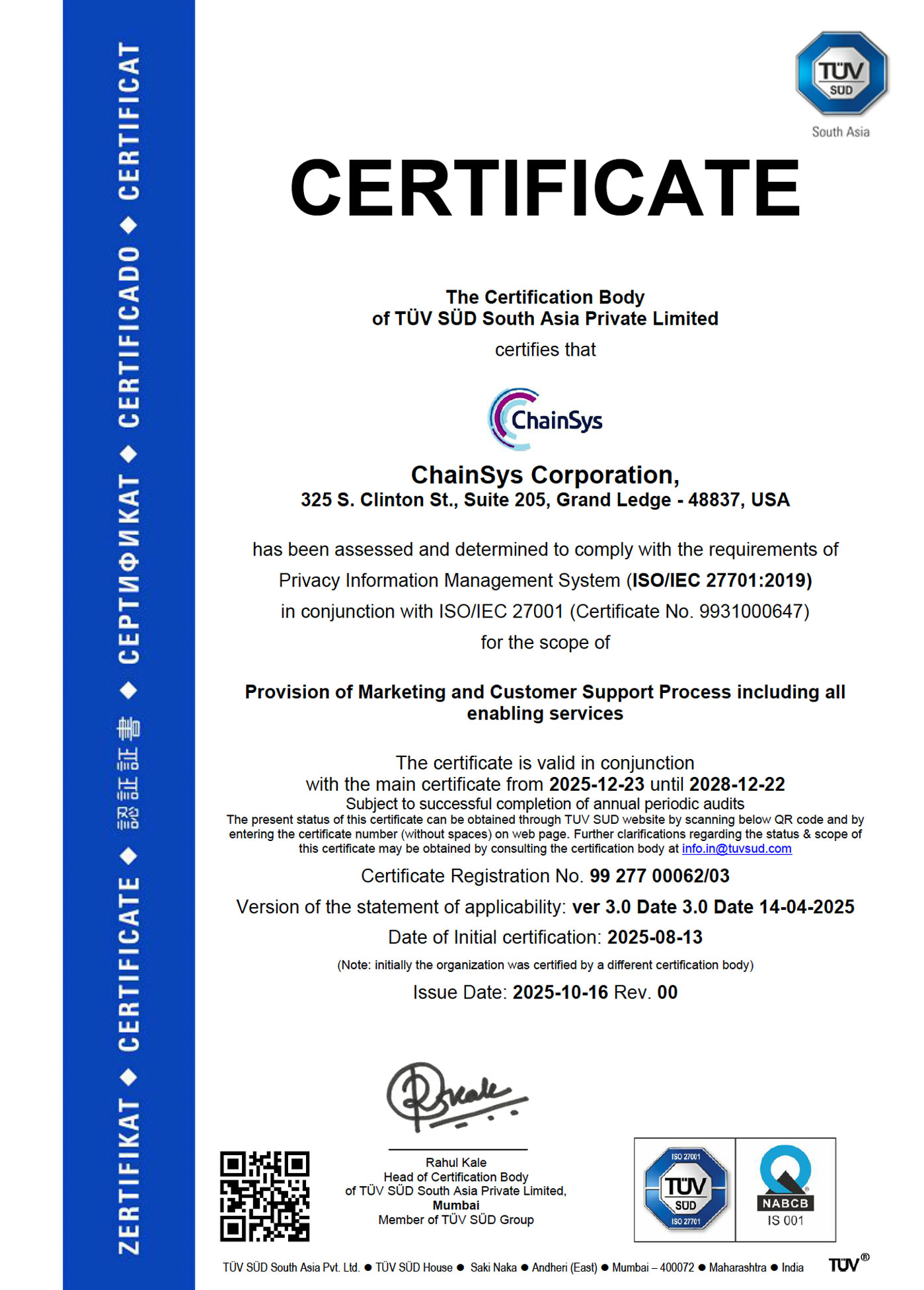 Certifications
